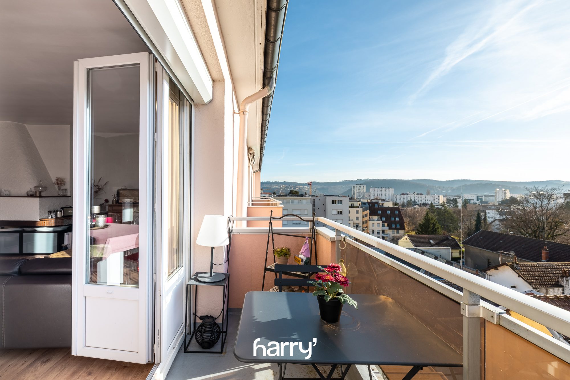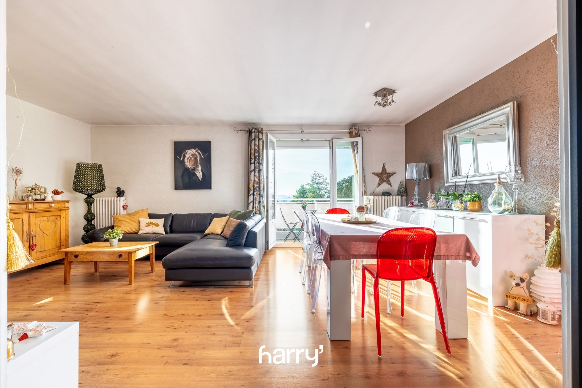 Dès l’entrée vous trouverez une grande pièce à vivre lumineuse avec un balcon qui offre une vue dégagée.